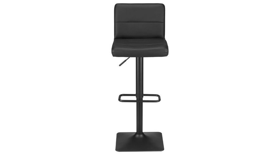 Modern barski stol, ki je oblazinjen s kvalitetnim umetnim PU usnjem. Barski stol je vrtljiv in nastavljiv po višini, s plinskim mehanizmom v črnem nosilnem stebričku. Višina sedišča se lahko nastavi od od 64 na 84 cm. Črno podnožje je izdelano iz kovine in je prašno lakirano za boljšo zaščito pred korozijo. Na podnožju ima kvadratno opiralo za noge, za bolj udobno sedenje. Kvadratna talna plošča zagotavlja dobro stabilnost stola. Maksimalna nosilnost barskega stola je 120 kg.