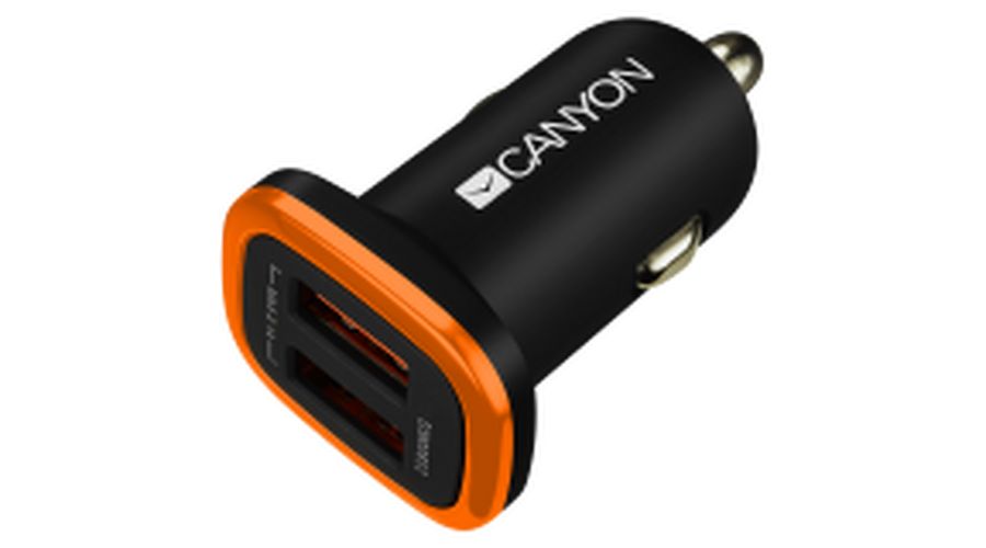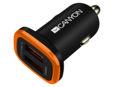 CANYON - avtomobilski polnilnik, 12V/24V, 5V-2.1A, 2x USB-A, črn,
