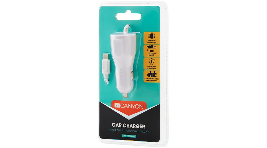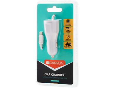 Trgovsko ime | CANYON car charger C-033 2.4A/USB-A built-in Lightning White |