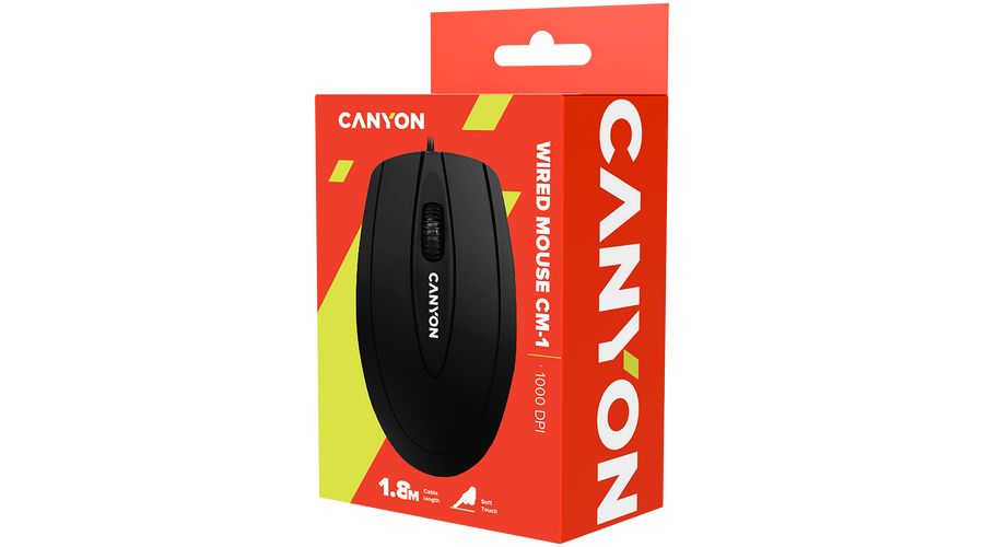 Classic style and convenience in use – that’s all about CANYON mouse CNE-CMS1. This model features housing with soft-touch cover and reliable cable with USB 2.0. Resolution of mouse is 1000 dpi and that guaranties high precision of movements.