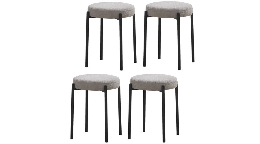 Oblazinjenje zagotavlja mehko površino, ki poveča udobje sedenja v primerjavi s tršimi sedeži, hkrati pa daje stolu bolj prefinjen videz kljub minimalistični zasnovi z očitnim kovinskim podnožjem. Sedež ima premer 37,5 cm in višino 49 cm. Stol je dobavljen v celoti sestavljen, kar omogoča takojšnjo uporabo brez dodatnega orodja ali opreme.