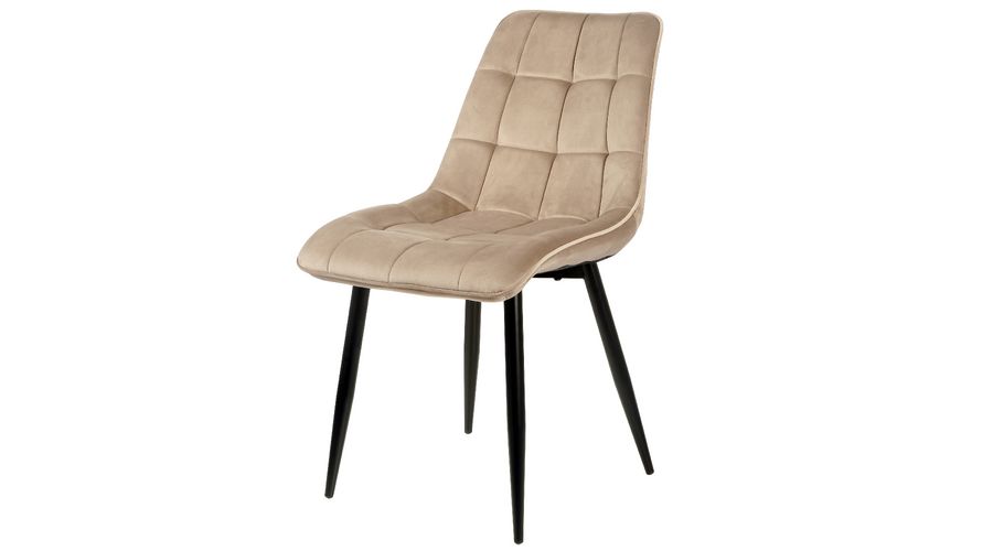 Sodoben jedilniški stol z elegantnim dizajnom in udobnim sedenjem, zaradi česar je popoln dodatek za jedilnico. Stol je oblazinjen z mehko tkanino z razkošnim otipom žameta, ki zagotavlja udobje in pridih prefinjenosti. Sedež in naslonjalo imata prešite okrasne šive v kvadratnem vzorcu, ki stolu dodajo teksturiran okrasni videz.