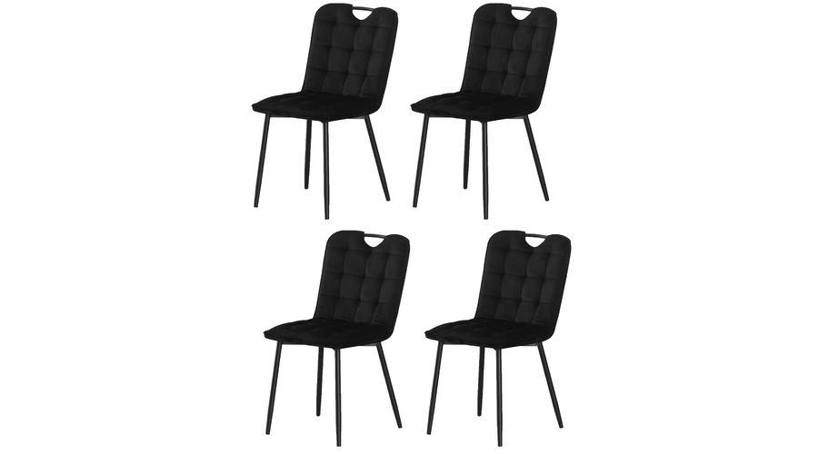 Jedilniški stol z žametnim oblazinjenjem, zasnovan tako za udobno sedenje kot za čist, enoten videz. Stol je na voljo v beli, črni, rdeči ali zeleni barvi, kar omogoča ujemanje z različnimi barvnimi shemami notranjosti.