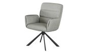 Oblazinjen jedilniški stol z rokonasloni ter vrtilno funkcijo, ki združuje sodoben slog s funkcionalno uporabnostjo, primeren za širok spekter stanovanjskih in poslovnih notranjosti.