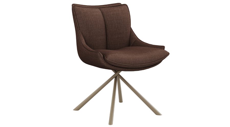 Jedilniški stol z dvojno plastjo oblazinjenja po sedišču ter hrbtišču, na voljo v rjavi ali svetlo sivi barvni varijanti.