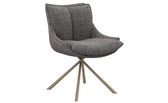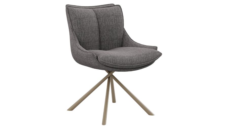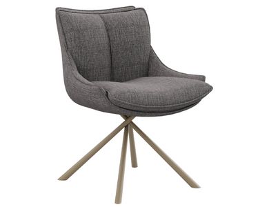 Jedilniški stol z dvojno plastjo oblazinjenja po sedišču ter hrbtišču, na voljo v curry ali svetlo sivi barvni varijanti.