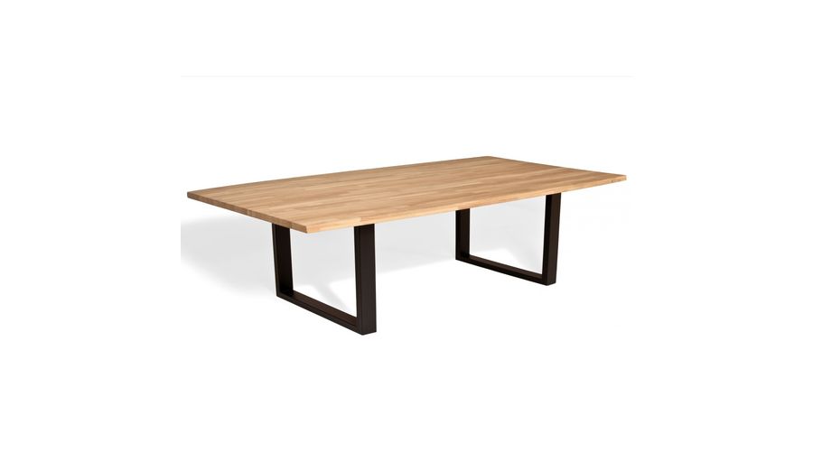 Klubska miza iz masivnega lesa, z mizno ploščo velikosti 110x60 cm ter ravnim robom. višina mizejje 45 cm. Kovinsko podnožje je prašno barvano v črni barvi za boljšo zaščito pred vplivi okolja in korozije.