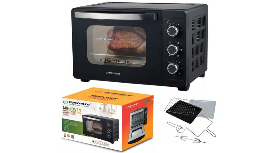 Električna pečica ESPERANZA NAPOLI, 25L, konvekcija, raženj, 1600W, črna