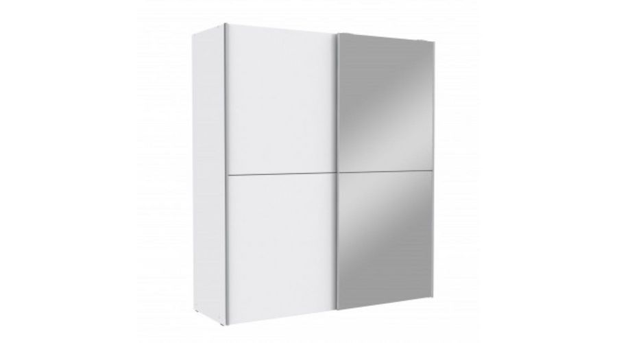 Garderobna omara z dvojimi drsnimi vratci ima eno vratno krilo v beli barvi, na drugem je ogledalo. Pozicija vrat je zamenljiva. Kovinski deli so aluminijasti. V notranjosti se nahajata dve odstranljivi obešalni letvi, nad njima sta polici. Maksimalna nosilnost letev je 15 kg, polic 10 kg. Dodatno je možno naročiti tudi set treh notranjih polic.