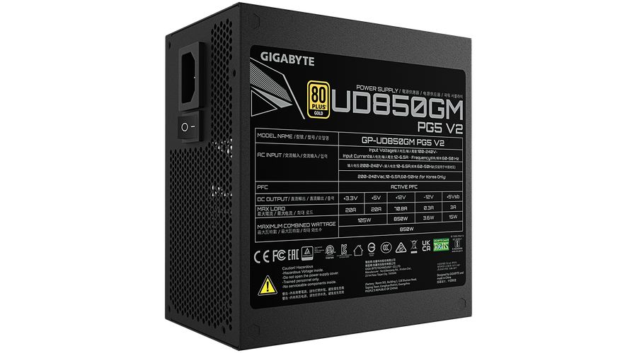 GIGABYTE UD850GM PG5 V2 850W modularni napajalnik, 80 PLUS Gold, podpora za PCIe Gen 5.1 in ATX 3.1 standard