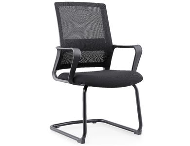 Udoben konferenčni stol, na voljo v povsem črni barvi. Sedišče stola je oblazinjeno z mehko tkanino ter napolnjeno s peno, naslon za hrbet pa je pokrit s prepustno mrežo ki srkbi za dober pretok zraka. Fiksni rokonasloni so narejeni iz polipropilena. Okvir stola je kovinski, ter za dobro zaščito pred okoljem prašno lakiran.