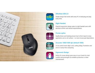 Miška ASUS WT425, brezžična, črna - 90XB0280-BMU000 - 4716659934004
