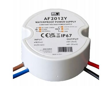 Napajalnik plastični okrogli AF2012Y, IP67, 20W 12V/1,67A