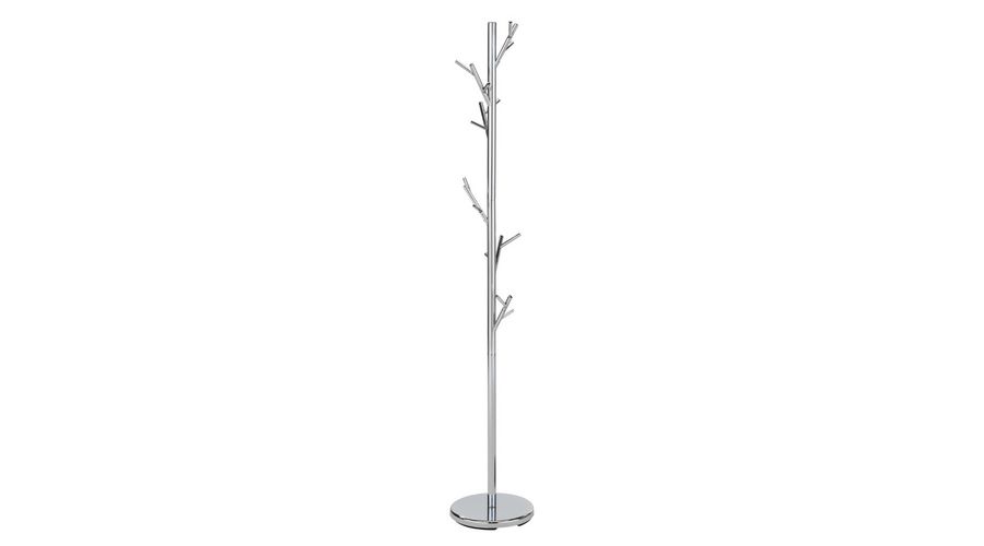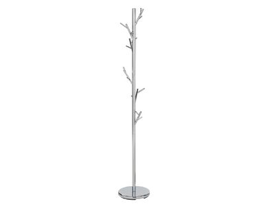 Modern obešalnik ki bo razsvetlil vašo predsobo ali garderobo z bleščečim krom finišem. Obešalnik je izdelan iz jeklene cevi s krom finišem. Glavni steber je visok 177 cm in ima v dveh nivojih nameščenih 6 velikih kovinskih kljukic, vsaka pa ima še dve manjši kljukici. Ojačana talna plošča okrogle oblike ima premer 30 cm in zagotavlja dobro stabilnost tudi ko je obešalnik močno obtežen. Maksimalna skupna nosilnost obešalnika je 1,5 kg na vsako veliko kljuko, skupaj 9 kg.