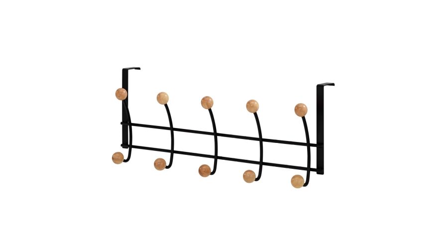 Obešalnik za majhne prostore, ko je potrebno izkoristiti vsak kotiček: obešalnik se lahko obesi na vrata, opremljen je z desetimi nosilci. Okvir je narejen iz jekla, prašno barvanega v črni barvi. Vrh nosilcev je narejen iz lesa kavčukovca v natur barvi.