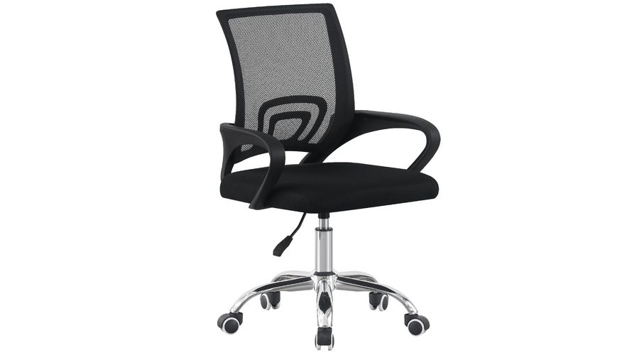 Podnožje stola je izdelano iz kromirane kovine za čist, poliran videz. Kromirana površina povečuje vzdržljivost, ščiti površino pred praskami in korozijo ter olajša čiščenje. Petkrako podnožje zagotavlja stabilno porazdelitev teže, kolesca pa omogočajo gladko, večsmerno gibanje tako na trdih kot na preprogah.