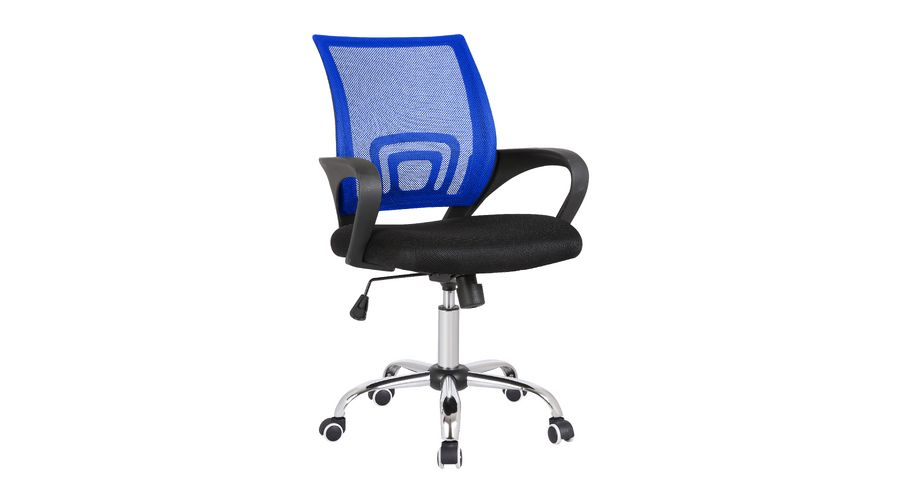 Pisarniški stol s plastificiranimi rokonasloni in mrežnim hrbtiščem. Sedišče je oblazinjeno in oblečeno v tkanino. Podožje je kromirano z gumiranimi kolesi. Stol je vrtljiv in nastavljiv po višini. Maksimalna nosilnost stola: 90 kg. Višina sedišča 49-60cm. Stol je namenjen domači uporabi, za otroke in mladostnike.