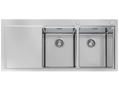 Pomivalno korito Foster Master 1252 051. Izkusite vsestranskost pomivalnega korita iz nerjavečega jekla, ki ponuja izbiro podometne ali zgornje vgradnje, ki ga dopolnjujeta brušeni zaključek Foster in samodejni nadzor odtoka. Ta umivalnik je na voljo v konfiguracijah z eno ali dvema skledama, z zasnovo majhnega radija in izdatno globino, ki presega 20 cm. Vključitev perimetralnega preliva in robustna debelina 1 mm zagotavljata optimalno funkcionalnost in vzdržljivost. Prilagodite svoje korito z dodatnimi dodatki, kot so deske za rezanje, cedila, stojala za krožnike in strgalniki. Za brezšiven in usklajen videz je pomivalno korito popolnoma združljivo z mešalnimi armaturami Master in Play.