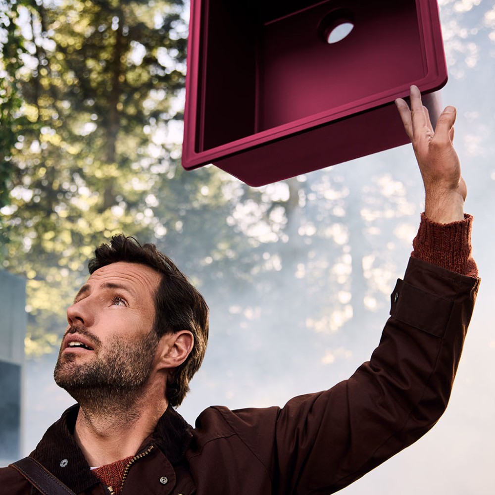 Prihaja iz prestižne linije Cristadur® in v tej rdeči barvi Berry se bo lepo umestilo v vsako kuhinjo. Koritu lahko dodate še druge dodatke kot so izlivno prelivna garnitura v različnih barvnih obdelavah, nosilec s posodo in/ali cedilom, rezalna deska, dizajnerski odcejalnik iz plemenitega jekla, gumb za avtomatsko odpiranje in zapiranje izliva ter dozirnik za milo.