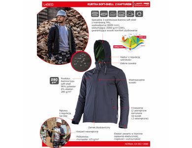 SOFTSHELL JAKNA S KAPUCO MODRA, 2XL LAHTI L4093305