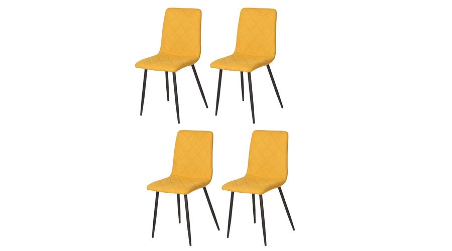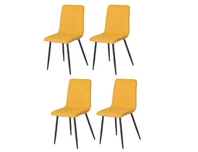 Preprost jedilniški stol, ki ima hrbtišče in sedišče v celoti oblazinjeno v kvalitetno tkanino. Sprednja stran stola ima čudovito prešitje v obliki rombov. Stol je na voljo v različnih barvah. Okrogle kovinske noge so premera 2,5 cm in so prašno lakirane v črno barvo. Višina sedišča je 47 cm. Maksimalna nosilnost stola je 120 kg.
