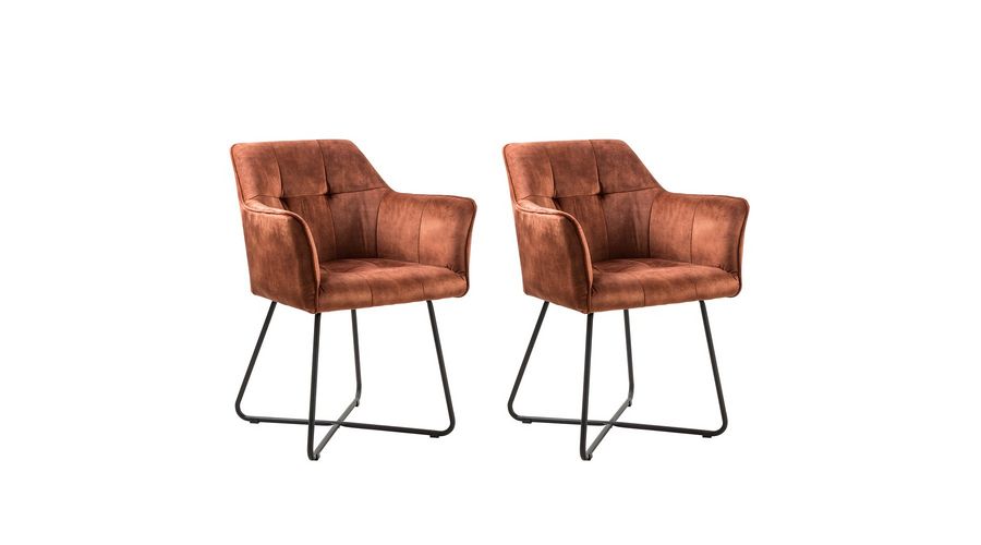 Modern jedilniški stol oblazinjen v mehko žametno tkanino z visokimi rokonasloni. Sedišče in hrbtišče je narejeno iz vezne plošče, oblazinjene s peno debeline 7 cm in oblečeno v tkanino, ki je na hrbtišču prešita, po sedišču in rokonasloni ima poudarjene šive. Podnožje je narejeno iz okroglih kovinskih cevi, obdelano s prašnim lakiranjem v črno mat barvo. Dimenzija okroglih cevi nog je 1,6x3,2 cm. Maksimalna nosilnost stola je 120 kg.