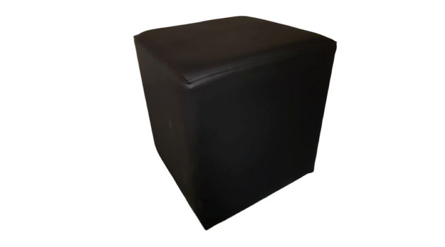 Tabure v obliki kocke v umetnem usnju ali v tkanini.